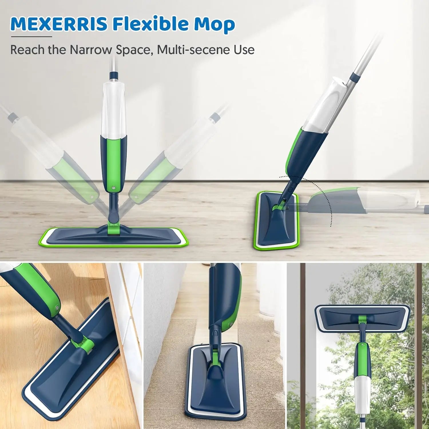 Spray Wet Mops for Hardwood Floor Cleaning: MEXERRIS Flat Mop with 5 Washable Pads for Swiffer Powermop - Floor Mop Dust Dry Mops with 2 Bottles for Laminate Vinyl Tiles Wood